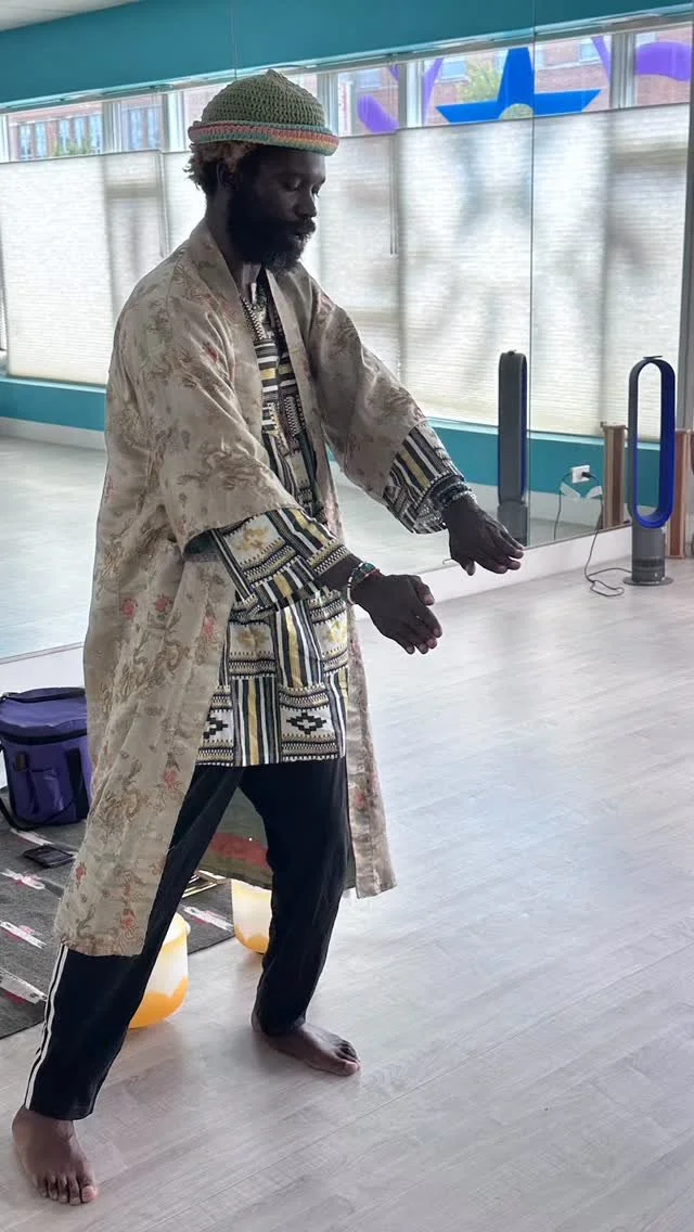 Adinkra are Ghanian visual symbols that encapsulate messages conveying traditional wisdom, philosophical thoughts, ideas, or aspects of life or the environment. There are 121 of these symbols. The one embraced by Studio Yogi is SESA WO SUBAN. It combines two separate adinkra symbols: inside the wheel, which represents rotation or independent movement, is the “morning star,” which can mean “a new start to the day.” When placed together, the two symbols become SESA WO SUBAN, which represents and imparts the courage and willingness to embrace change and transformation.